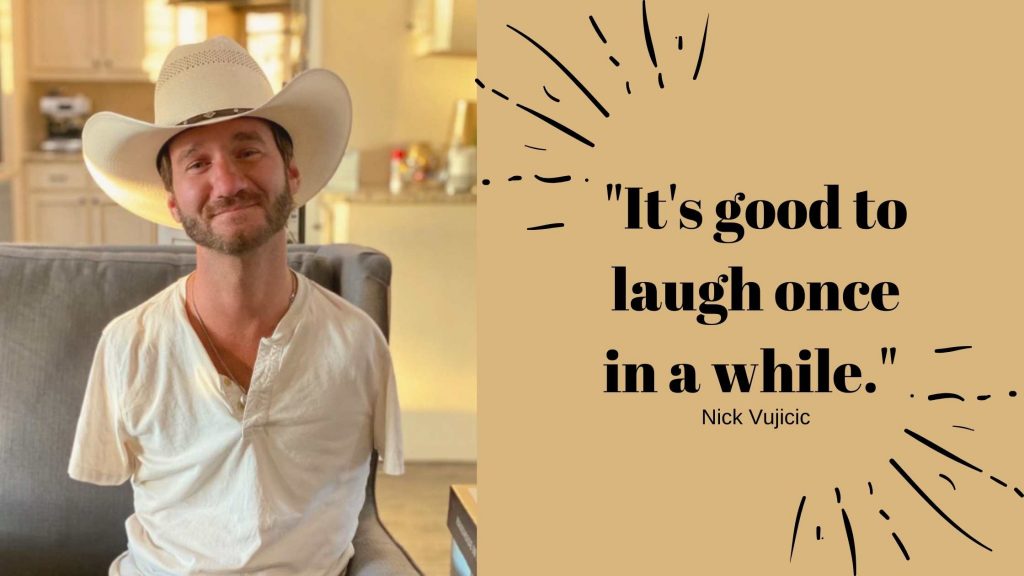 Ada satu titik di mana Nick merasa ingin menyerah. Doanya kepada Tuhan, meminta sepasang tangan dan kaki, nggak pernah dikabulkan. Tapi Nick berhasil melalui itu semua dan mulai menerima dirinya. Meskipun nggak memiliki anggota tubuh yang sangat penting bagi orang lain, Nick tetap bisa beraktivitas seperti layaknya orang normal.